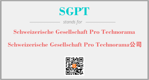 上述内容是“Schweizerische Gesellschaft Pro Technorama”作为“SGPT”的缩写,解释为“Schweizerische Gesellschaft Pro Technorama公司”时的信息,以及英文缩略词SGPT所代表的英文单词,其对应的中文拼音、详细解释以及在英文中的流行度和相关分类、应用领域及应用示例等。
