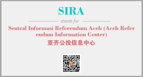以上为Sentral Informasi Referendum Aceh (Aceh Referendum Information Center)英文缩略词SIRA的中文解释,以及该英文缩写在英语的流行度、分类和应用领域方面的信息。