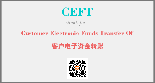 上述内容是“Customer Electronic Funds Transfer Of”作为“CEFT”的缩写,解释为“客户电子资金转账”时的信息,以及英文缩略词CEFT所代表的英文单词,其对应的中文拼音、详细解释以及在英文中的流行度和相关分类、应用领域及应用示例等。