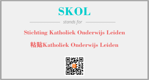 上述内容是“Stichting Katholiek Onderwijs Leiden”作为“SKOL”的缩写,解释为“粘贴Katholiek Onderwijs Leiden”时的信息,以及英文缩略词SKOL所代表的英文单词,其对应的中文拼音、详细解释以及在英文中的流行度和相关分类、应用领域及应用示例等。