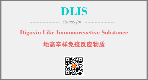 上述内容是“Digoxin Like Immunoreactive Substance”作为“DLIS”的缩写,解释为“地高辛样免疫反应物质”时的信息,以及英文缩略词DLIS所代表的英文单词,其对应的中文拼音、详细解释以及在英文中的流行度和相关分类、应用领域及应用示例等。