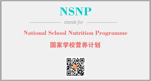 上述内容是“National School Nutrition Programme”作为“NSNP”的缩写,解释为“国家学校营养计划”时的信息,以及英文缩略词NSNP所代表的英文单词,其对应的中文拼音、详细解释以及在英文中的流行度和相关分类、应用领域及应用示例等。