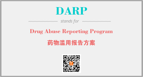 上述内容是“Drug Abuse Reporting Program”作为“DARP”的缩写,解释为“药物滥用报告方案”时的信息,以及英文缩略词DARP所代表的英文单词,其对应的中文拼音、详细解释以及在英文中的流行度和相关分类、应用领域及应用示例等。