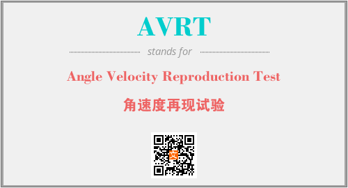 上述内容是“Angle Velocity Reproduction Test”作为“AVRT”的缩写,解释为“角速度再现试验”时的信息,以及英文缩略词AVRT所代表的英文单词,其对应的中文拼音、详细解释以及在英文中的流行度和相关分类、应用领域及应用示例等。