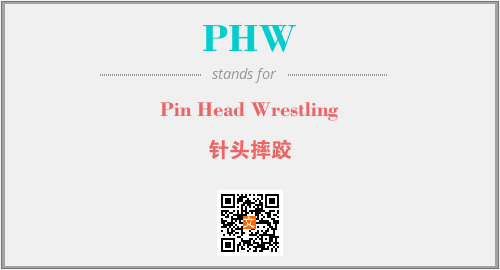 上述内容是“Pin Head Wrestling”作为“PHW”的缩写,解释为“针头摔跤”时的信息,以及英文缩略词PHW所代表的英文单词,其对应的中文拼音、详细解释以及在英文中的流行度和相关分类、应用领域及应用示例等。