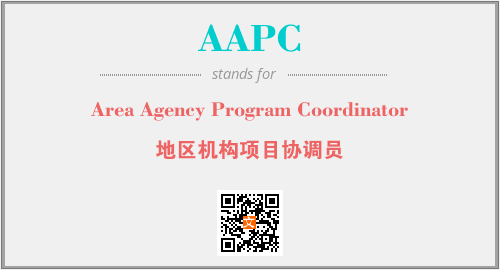 英文缩略词“AAPC”经常作为“Area Agency Program Coordinator”的英文缩写来使用,中文表示:“地区机构项目协调员”。本文将详细介绍英文缩写词AAPC所代表英文单词,其对应的中文拼音、详细解释以及在英语中的流行度。此外,还有关于缩略词AAPC的分类、应用领域及相关应用示例等。