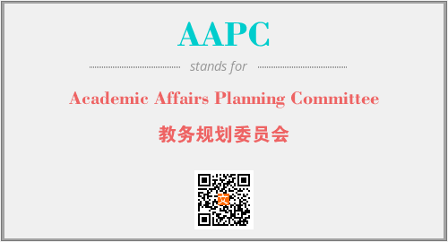 英文缩略词“AAPC”经常作为“Academic Affairs Planning Committee”的英文缩写来使用,中文表示:“教务规划委员会”。本文将详细介绍英文缩写词AAPC所代表英文单词,其对应的中文拼音、详细解释以及在英语中的流行度。此外,还有关于缩略词AAPC的分类、应用领域及相关应用示例等。