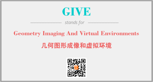 上述内容是“Geometry Imaging And Virtual Environments”作为“GIVE”的缩写,解释为“几何图形成像和虚拟环境”时的信息,以及英文缩略词GIVE所代表的英文单词,其对应的中文拼音、详细解释以及在英文中的流行度和相关分类、应用领域及应用示例等。