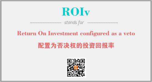 上述内容是“Return On Investment configured as a veto”作为“ROIv”的缩写,解释为“配置为否决权的投资回报率”时的信息,以及英文缩略词ROIv所代表的英文单词,其对应的中文拼音、详细解释以及在英文中的流行度和相关分类、应用领域及应用示例等。