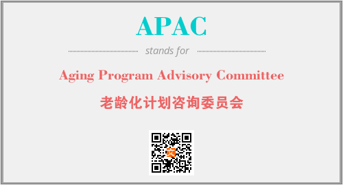上述内容是“Aging Program Advisory Committee”作为“APAC”的缩写,解释为“老龄化计划咨询委员会”时的信息,以及英文缩略词APAC所代表的英文单词,其对应的中文拼音、详细解释以及在英文中的流行度和相关分类、应用领域及应用示例等。
