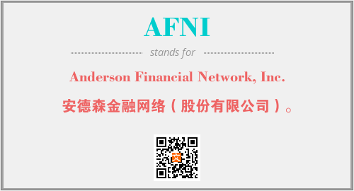 上述内容是“Anderson Financial Network, Inc.”作为“AFNI”的缩写,解释为“安德森金融网络(股份有限公司)。”时的信息,以及英文缩略词AFNI所代表的英文单词,其对应的中文拼音、详细解释以及在英文中的流行度和相关分类、应用领域及应用示例等。