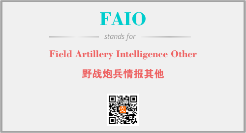 上述内容是“Field Artillery Intelligence Other”作为“FAIO”的缩写,解释为“野战炮兵情报其他”时的信息,以及英文缩略词FAIO所代表的英文单词,其对应的中文拼音、详细解释以及在英文中的流行度和相关分类、应用领域及应用示例等。