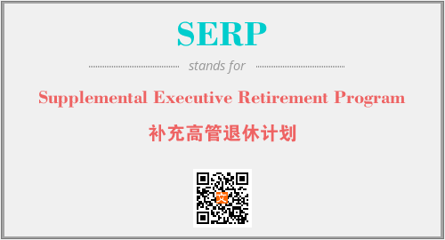 上述内容是“Supplemental Executive Retirement Program”作为“SERP”的缩写,解释为“补充高管退休计划”时的信息,以及英文缩略词SERP所代表的英文单词,其对应的中文拼音、详细解释以及在英文中的流行度和相关分类、应用领域及应用示例等。