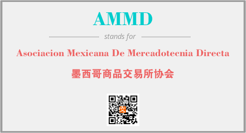 上述内容是“Asociacion Mexicana De Mercadotecnia Directa”作为“AMMD”的缩写,解释为“墨西哥商品交易所协会”时的信息,以及英文缩略词AMMD所代表的英文单词,其对应的中文拼音、详细解释以及在英文中的流行度和相关分类、应用领域及应用示例等。