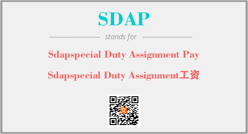 上述内容是“Sdapspecial Duty Assignment Pay”作为“SDAP”的缩写,解释为“Sdapspecial Duty Assignment工资”时的信息,以及英文缩略词SDAP所代表的英文单词,其对应的中文拼音、详细解释以及在英文中的流行度和相关分类、应用领域及应用示例等。
