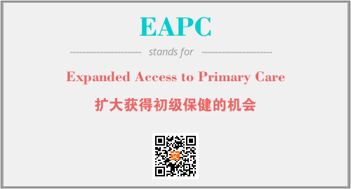 英文缩略词“EAPC”经常作为“Expanded Access to Primary Care”的英文缩写来使用,中文表示:“扩大获得初级保健的机会”。本文将详细介绍英文缩写词EAPC所代表英文单词,其对应的中文拼音、详细解释以及在英语中的流行度。此外,还有关于缩略词EAPC的分类、应用领域及相关应用示例等。