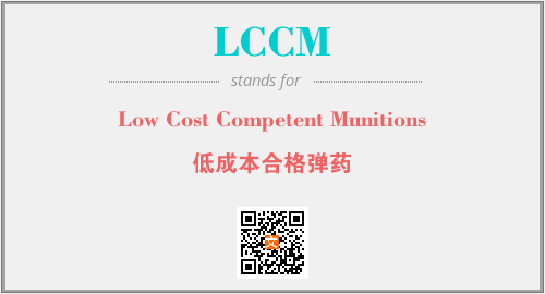 英文缩略词“LCCM”经常作为“Low Cost Competent Munitions”的英文缩写来使用,中文表示:“低成本合格弹药”。本文将详细介绍英文缩写词LCCM所代表英文单词,其对应的中文拼音、详细解释以及在英语中的流行度。此外,还有关于缩略词LCCM的分类、应用领域及相关应用示例等。