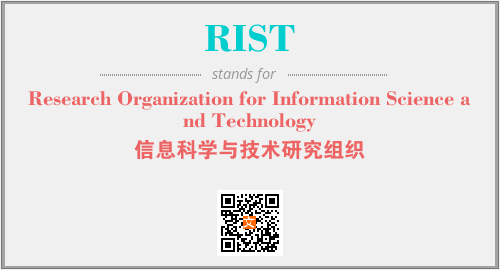 上述内容是“Research Organization for Information Science and Technology”作为“RIST”的缩写,解释为“信息科学与技术研究组织”时的信息,以及英文缩略词RIST所代表的英文单词,其对应的中文拼音、详细解释以及在英文中的流行度和相关分类、应用领域及应用示例等。