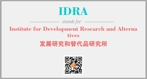 以上为Institute for Development Research and Alternatives英文缩略词IDRA的中文解释,以及该英文缩写在英语的流行度、分类和应用领域方面的信息。