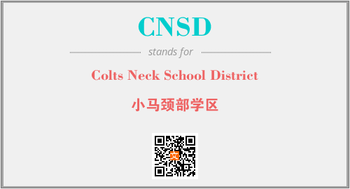 上述内容是“Colts Neck School District”作为“CNSD”的缩写,解释为“小马颈部学区”时的信息,以及英文缩略词CNSD所代表的英文单词,其对应的中文拼音、详细解释以及在英文中的流行度和相关分类、应用领域及应用示例等。