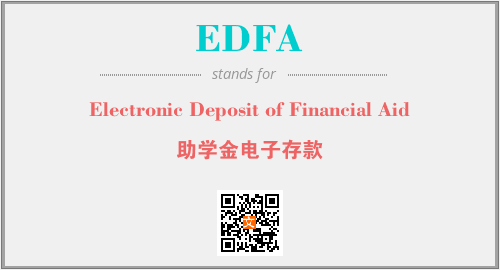 英文缩略词“EDFA”经常作为“Electronic Deposit of Financial Aid”的英文缩写来使用,中文表示:“助学金电子存款”。本文将详细介绍英文缩写词EDFA所代表英文单词,其对应的中文拼音、详细解释以及在英语中的流行度。此外,还有关于缩略词EDFA的分类、应用领域及相关应用示例等。