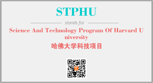 上述内容是“Science And Technology Program Of Harvard University”作为“STPHU”的缩写,解释为“哈佛大学科技项目”时的信息,以及英文缩略词STPHU所代表的英文单词,其对应的中文拼音、详细解释以及在英文中的流行度和相关分类、应用领域及应用示例等。