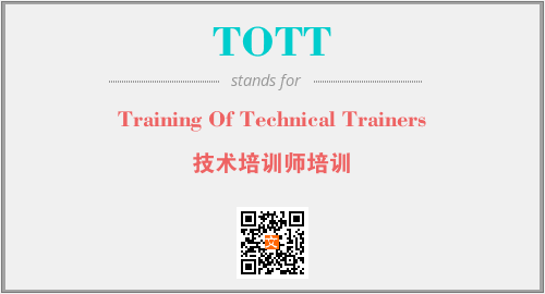 英文缩略词“TOTT”经常作为“Training Of Technical Trainers”的英文缩写来使用,中文表示:“技术培训师培训”。本文将详细介绍英文缩写词TOTT所代表英文单词,其对应的中文拼音、详细解释以及在英语中的流行度。此外,还有关于缩略词TOTT的分类、应用领域及相关应用示例等。