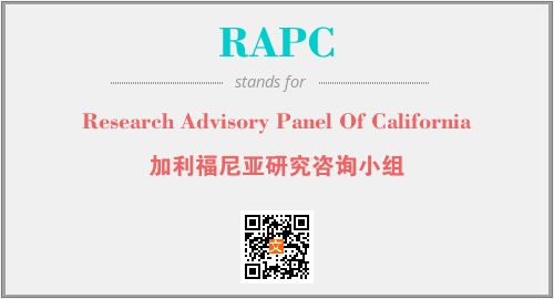 以上为Research Advisory Panel Of California英文缩略词RAPC的中文解释,以及该英文缩写在英语的流行度、分类和应用领域方面的信息。