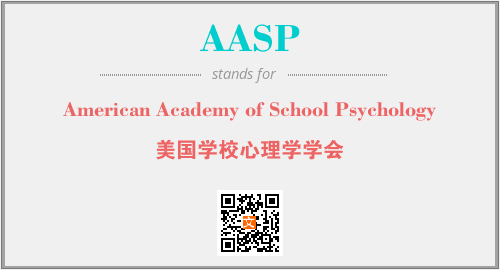 上述内容是“American Academy of School Psychology”作为“AASP”的缩写,解释为“美国学校心理学学会”时的信息,以及英文缩略词AASP所代表的英文单词,其对应的中文拼音、详细解释以及在英文中的流行度和相关分类、应用领域及应用示例等。