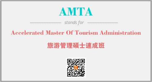 上述内容是“Accelerated Master Of Tourism Administration”作为“AMTA”的缩写,解释为“旅游管理硕士速成班”时的信息,以及英文缩略词AMTA所代表的英文单词,其对应的中文拼音、详细解释以及在英文中的流行度和相关分类、应用领域及应用示例等。