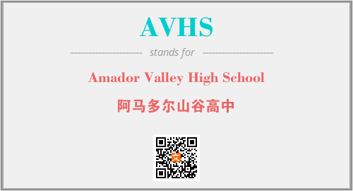 上述内容是“Amador Valley High School”作为“AVHS”的缩写,解释为“阿马多尔山谷高中”时的信息,以及英文缩略词AVHS所代表的英文单词,其对应的中文拼音、详细解释以及在英文中的流行度和相关分类、应用领域及应用示例等。