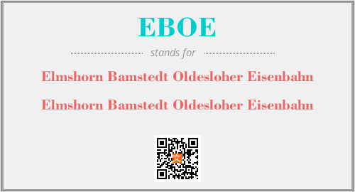 英文缩略词“EBOE”经常作为“Elmshorn Bamstedt Oldesloher Eisenbahn”的英文缩写来使用,中文表示:“Elmshorn Bamstedt Oldesloher Eisenbahn”。本文将详细介绍英文缩写词EBOE所代表英文单词,其对应的中文拼音、详细解释以及在英语中的流行度。此外,还有关于缩略词EBOE的分类、应用领域及相关应用示例等。