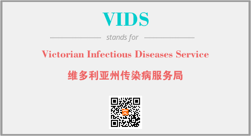 上述内容是“Victorian Infectious Diseases Service”作为“VIDS”的缩写,解释为“维多利亚州传染病服务局”时的信息,以及英文缩略词VIDS所代表的英文单词,其对应的中文拼音、详细解释以及在英文中的流行度和相关分类、应用领域及应用示例等。