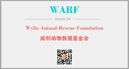 上述内容是“Wylie Animal Rescue Foundation”作为“WARF”的缩写,解释为“威利动物救援基金会”时的信息,以及英文缩略词WARF所代表的英文单词,其对应的中文拼音、详细解释以及在英文中的流行度和相关分类、应用领域及应用示例等。