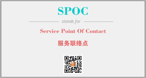 上述内容是“Service Point Of Contact”作为“SPOC”的缩写,解释为“服务联络点”时的信息,以及英文缩略词SPOC所代表的英文单词,其对应的中文拼音、详细解释以及在英文中的流行度和相关分类、应用领域及应用示例等。
