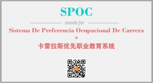 上述内容是“Sistema De Preferencia Ocupacional De Carreras”作为“SPOC”的缩写,解释为“卡雷拉斯优先职业教育系统”时的信息,以及英文缩略词SPOC所代表的英文单词,其对应的中文拼音、详细解释以及在英文中的流行度和相关分类、应用领域及应用示例等。