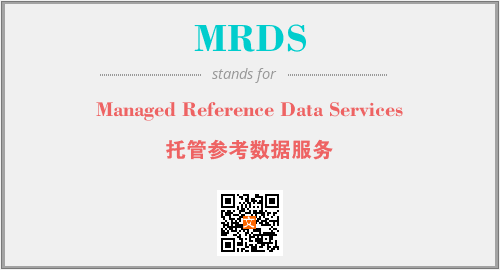英文缩略词“MRDS”经常作为“Managed Reference Data Services”的英文缩写来使用,中文表示:“托管参考数据服务”。本文将详细介绍英文缩写词MRDS所代表英文单词,其对应的中文拼音、详细解释以及在英语中的流行度。此外,还有关于缩略词MRDS的分类、应用领域及相关应用示例等。