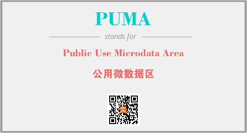 英文缩略词“PUMA”经常作为“Public Use Microdata Area”的英文缩写来使用,中文表示:“公用微数据区”。本文将详细介绍英文缩写词PUMA所代表英文单词,其对应的中文拼音、详细解释以及在英语中的流行度。此外,还有关于缩略词PUMA的分类、应用领域及相关应用示例等。