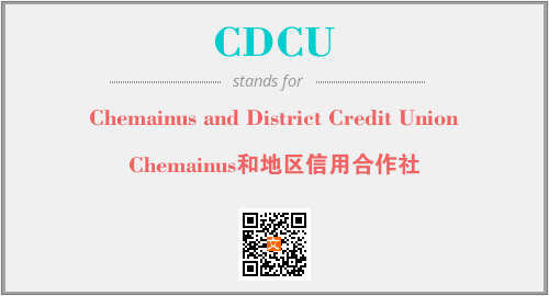 英文缩略词“CDCU”经常作为“Chemainus and District Credit Union”的英文缩写来使用,中文表示:“Chemainus和地区信用合作社”。本文将详细介绍英文缩写词CDCU所代表英文单词,其对应的中文拼音、详细解释以及在英语中的流行度。此外,还有关于缩略词CDCU的分类、应用领域及相关应用示例等。