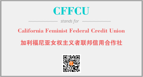 上述内容是“California Feminist Federal Credit Union”作为“CFFCU”的缩写,解释为“加利福尼亚女权主义者联邦信用合作社”时的信息,以及英文缩略词CFFCU所代表的英文单词,其对应的中文拼音、详细解释以及在英文中的流行度和相关分类、应用领域及应用示例等。