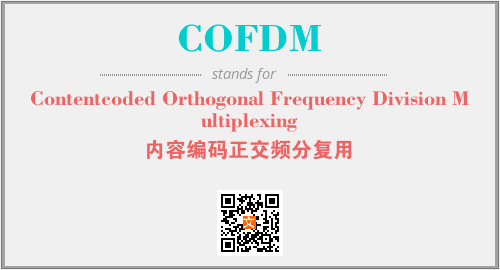 上述内容是“Contentcoded Orthogonal Frequency Division Multiplexing”作为“COFDM”的缩写,解释为“内容编码正交频分复用”时的信息,以及英文缩略词COFDM所代表的英文单词,其对应的中文拼音、详细解释以及在英文中的流行度和相关分类、应用领域及应用示例等。