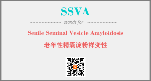 英文缩略词“SSVA”经常作为“Senile Seminal Vesicle Amyloidosis”的英文缩写来使用,中文表示:“老年性精囊淀粉样变性”。本文将详细介绍英文缩写词SSVA所代表英文单词,其对应的中文拼音、详细解释以及在英语中的流行度。此外,还有关于缩略词SSVA的分类、应用领域及相关应用示例等。