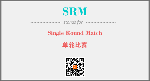 英文缩略词“SRM”经常作为“Single Round Match”的英文缩写来使用,中文表示:“单轮比赛”。本文将详细介绍英文缩写词SRM所代表英文单词,其对应的中文拼音、详细解释以及在英语中的流行度。此外,还有关于缩略词SRM的分类、应用领域及相关应用示例等。
