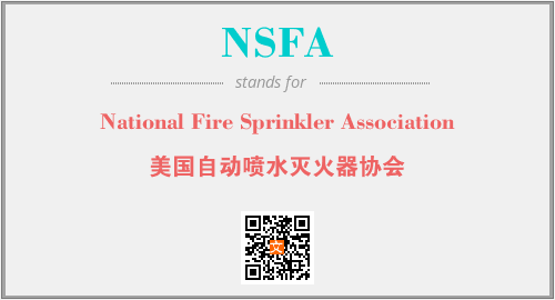 英文缩略词“NSFA”经常作为“National Fire Sprinkler Association”的英文缩写来使用,中文表示:“美国自动喷水灭火器协会”。本文将详细介绍英文缩写词NSFA所代表英文单词,其对应的中文拼音、详细解释以及在英语中的流行度。此外,还有关于缩略词NSFA的分类、应用领域及相关应用示例等。