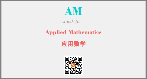 英文缩略词“AM”经常作为“Applied Mathematics”的英文缩写来使用,中文表示:“应用数学”。本文将详细介绍英文缩写词AM所代表英文单词,其对应的中文拼音、详细解释以及在英语中的流行度。此外,还有关于缩略词AM的分类、应用领域及相关应用示例等。