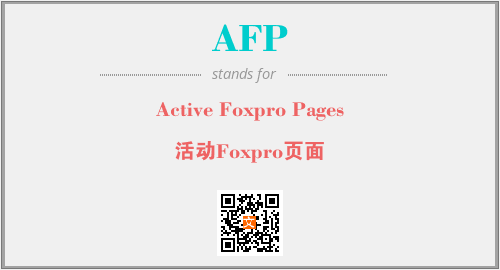 英文缩略词“AFP”经常作为“Active Foxpro Pages”的英文缩写来使用,中文表示:“活动Foxpro页面”。本文将详细介绍英文缩写词AFP所代表英文单词,其对应的中文拼音、详细解释以及在英语中的流行度。此外,还有关于缩略词AFP的分类、应用领域及相关应用示例等。