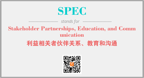 上述内容是“Stakeholder Partnerships, Education, and Communication”作为“SPEC”的缩写,解释为“利益相关者伙伴关系、教育和沟通”时的信息,以及英文缩略词SPEC所代表的英文单词,其对应的中文拼音、详细解释以及在英文中的流行度和相关分类、应用领域及应用示例等。