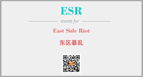 上述内容是“East Side Riot”作为“ESR”的缩写,解释为“东区暴乱”时的信息,以及英文缩略词ESR所代表的英文单词,其对应的中文拼音、详细解释以及在英文中的流行度和相关分类、应用领域及应用示例等。