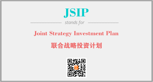 上述内容是“Joint Strategy Investment Plan”作为“JSIP”的缩写,解释为“联合战略投资计划”时的信息,以及英文缩略词JSIP所代表的英文单词,其对应的中文拼音、详细解释以及在英文中的流行度和相关分类、应用领域及应用示例等。
