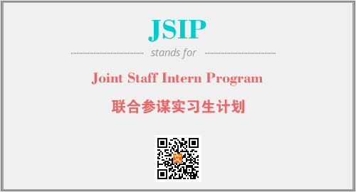 上述内容是“Joint Staff Intern Program”作为“JSIP”的缩写,解释为“联合参谋实习生计划”时的信息,以及英文缩略词JSIP所代表的英文单词,其对应的中文拼音、详细解释以及在英文中的流行度和相关分类、应用领域及应用示例等。
